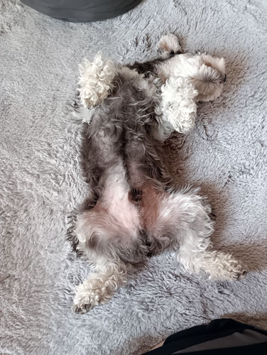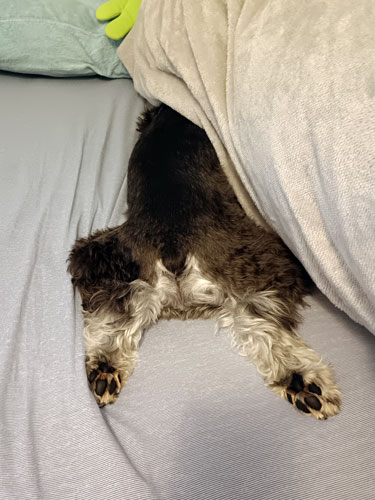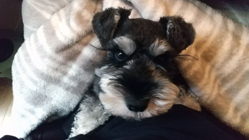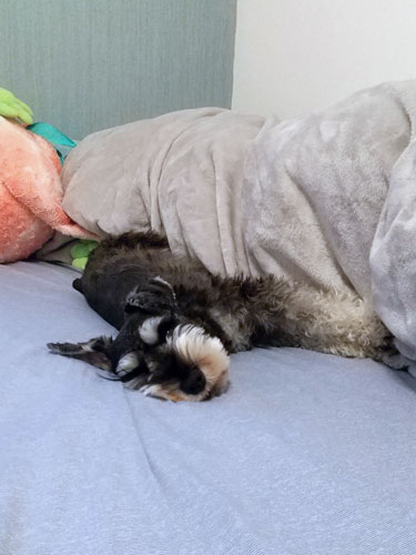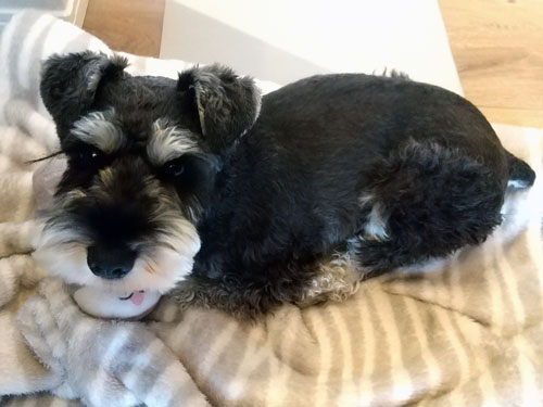 ↑飼い主がPC中にひざ掛けの中で寝てて、急に顔出してきた。かわいい。